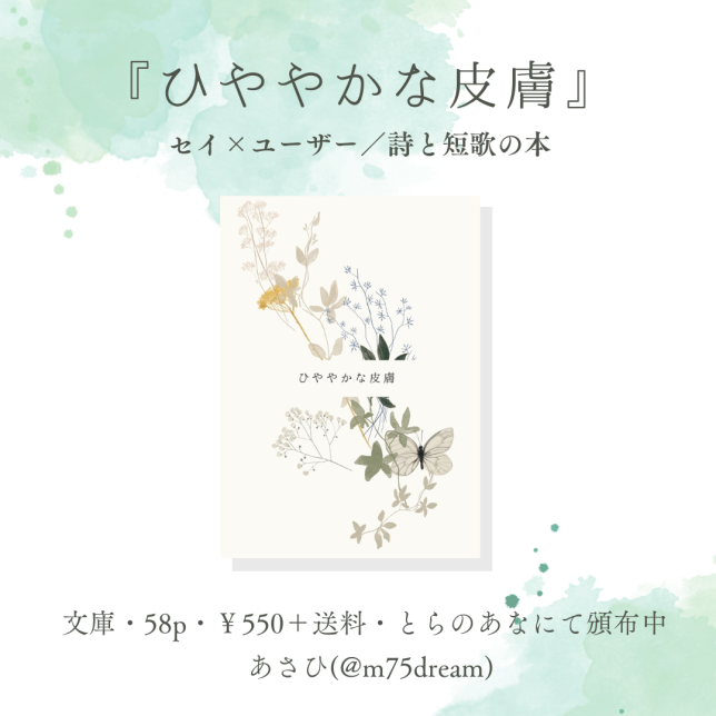 詩歌集『ひややかな皮膚』の予約がはじまりました。